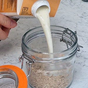 1. Pour 55g of one of our porridge mixes into an airtight container, and add 100ml of your choice of milk. Stir thoroughly.